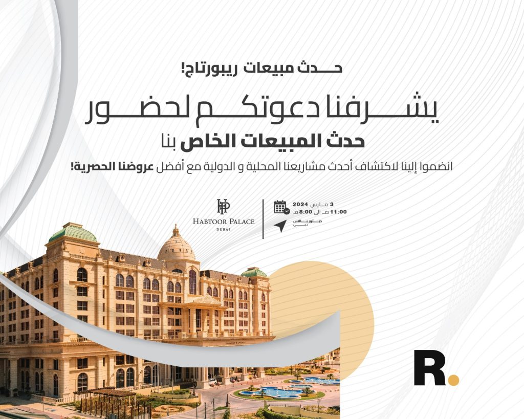 تنظم ريبورتاج العقارية، الشركة الرائدة في مجال التطوير العقاري بالإمارات، يوما خاصا للمبيعات، في فندق حبتور بالاس دبي، غدا الأحد المقبل، الموافق 3 مارس الحالي، ويتضمن الحدث عروضا خاصة على مشاريع الشركة المحلية والدولية، وتضم محفظة «ريبورتاج العقارية» 33 مشروعا بالإمارات، ومصر، وتركيا، والمغرب.