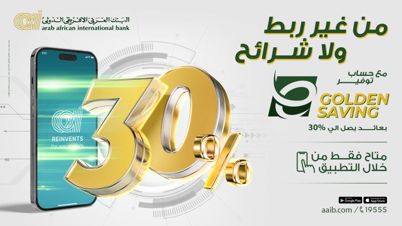 أعلن البنك العربي الأفريقي الدولي عن طرح حساب توفير جديد تحت إسم «E-Golden Saving» بعائد يصل إلى 30% وذلك اعتبارا من الأول من أبريل المقبل.