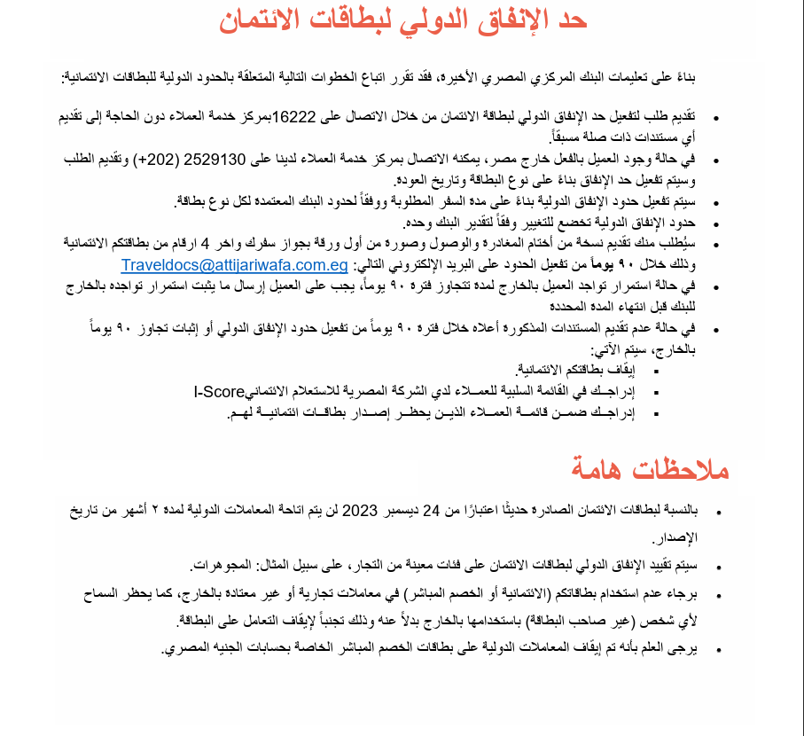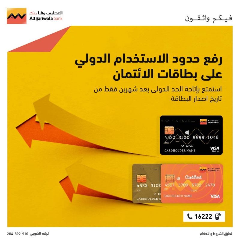أعلن بنك التجاري وفا بنك إيجيبت عن رفع رفع حدود الاستخدام الدولي على بطاقات التجاري وفا بنك إيجيبت الائتمانية داخل وخارج مصر.