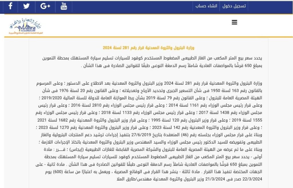 وزارة البترول والثروة المعدنية قرار رقم 281 لسنة 2024