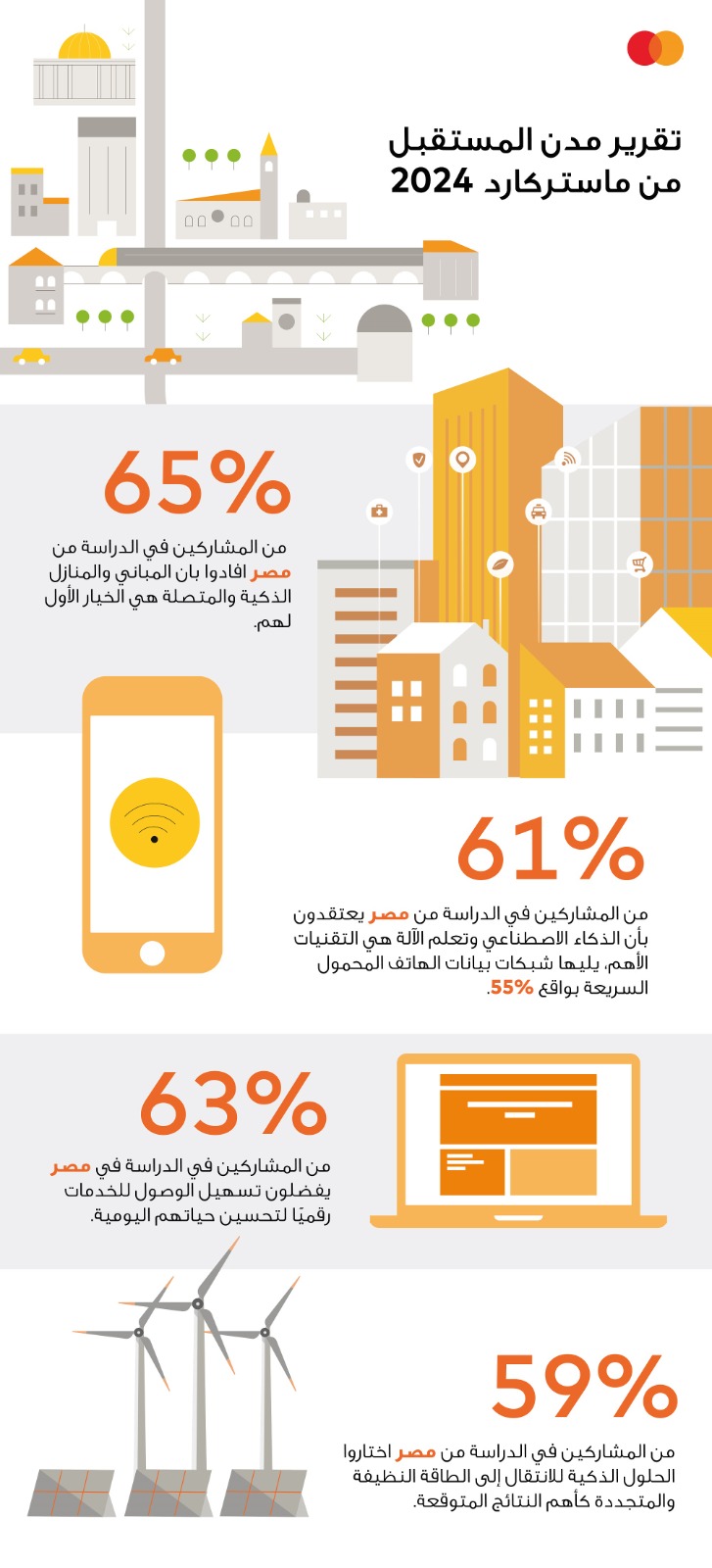 كشف تقرير حديث صادر عن ماستركارد حول تطلعات السكان ودور التقدم التكنولوجي في بناء المدن الذكية في الشرق الأوسط أن أربعة من كل خمسة أشخاص في مصر سيكونون أكثر سعادة عند العيش في مدينة ذكية.