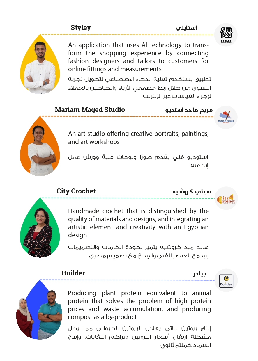كشفت وزارة التعاون الدولي، عن تفاصيل الشركات الناشئة ورواد الأعمال الذين حصلوا على الدعم الفني والتدريب وتخرجوا من الدورة السادسة من برنامج «أورنج كورنرز صعيد مصر»، لتصل إجمالي الشركات في الدورات الستة للبرنامج إلى 116 شركة.