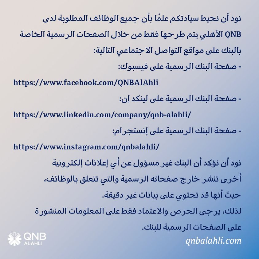 #QNB_الأهلي #وظائف_حقيقية #منصات_رسمية #حماية_العملاء #احتيال #مواقع_التواصل_الاجتماعي
