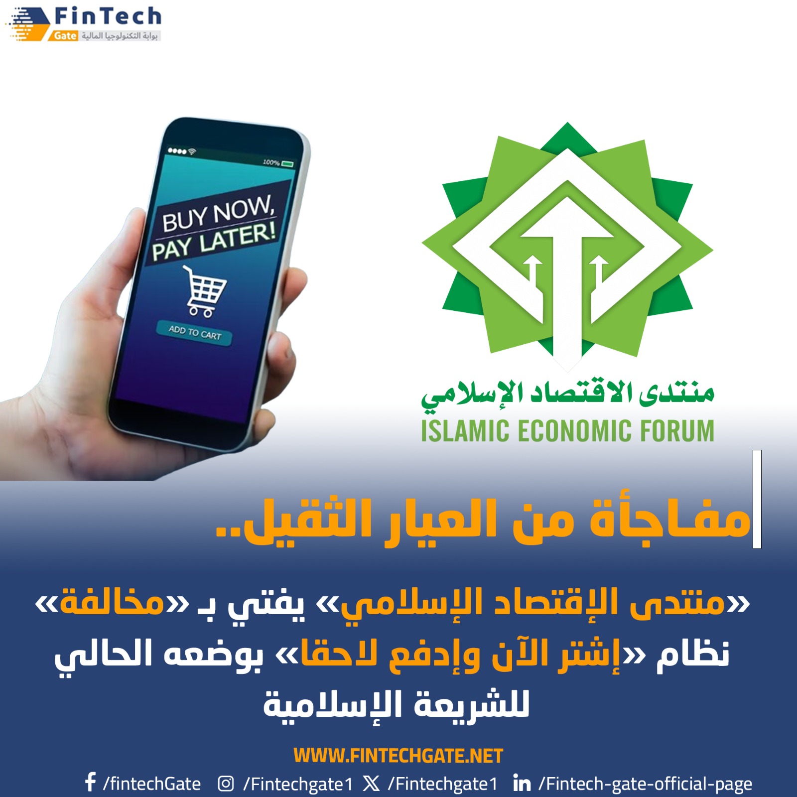 وأضاف المنتدى أن نظام إشتر الأن وإدفع لاحقا قد انتشر مؤخرا في بعض البلاد العربية والعالم ويعد من وسائل الدفع والائتمان قصير الأجل وأنه وبعد مناقشة جمعت نحو 620 عضوا في المنتدى الإقتصادي الإسلامي تم اعتماد فتوى بالإجماع بمخالفة تلك الآلية بنظامها الحالي لمقررات الشريعة الإسلامية.
