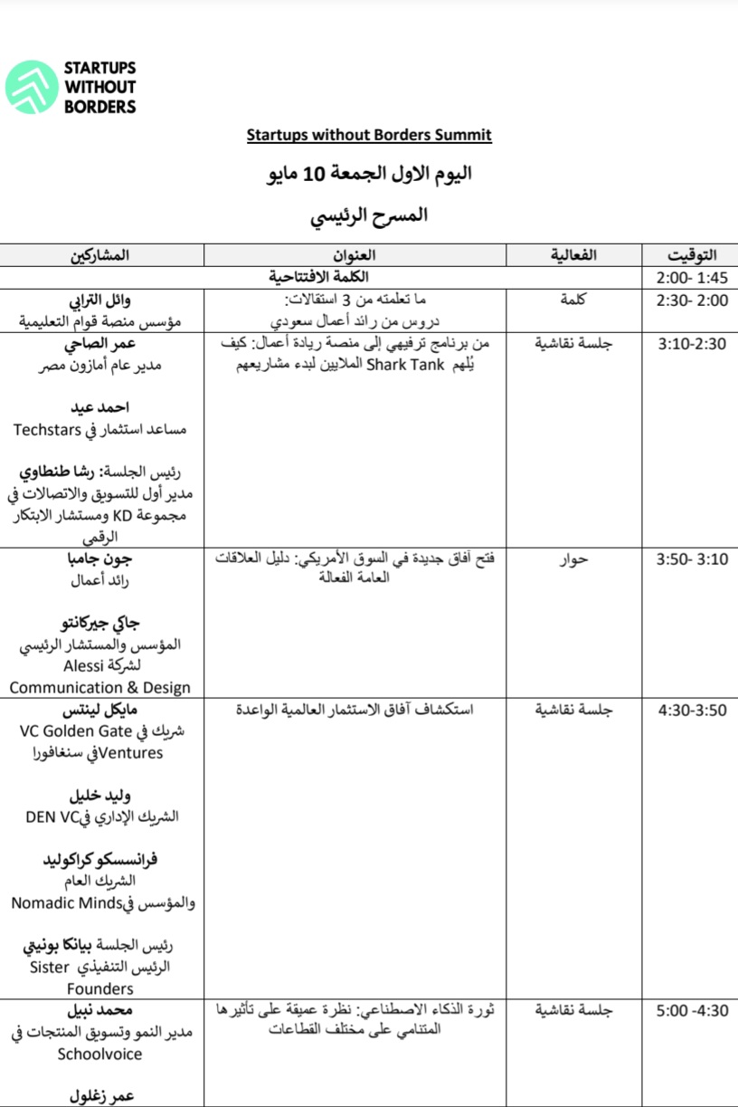 تنطلق يوم الجمعة المقبلة 10 مايو فعاليات قمة «شركات ناشئة بلا حدود Startups Without Borders» والتي تستمر لمدة يومين بمشاركة عددا كبير من كبار المستثمرين، ومستثمري رأس المال الجريء ومسئولي حاضنات ريادة الأعمال في مصر والمنطقة في Kamelizer, District 5 بالتجمع الخامس.