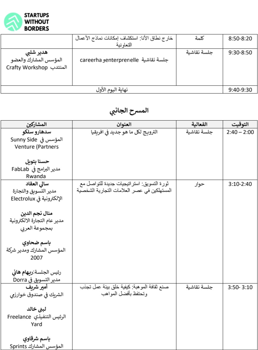 وسيتم التركيز على دعم رواد الأعمال وتمكينهم لتأسيس أعمال تجارية ذات نطاق عالمي من خلال ورش عمل متنوعة، وسيتم عرض مجموعة متنوعة من برامج الهبوط الناعم (Soft Landing) لكل من المملكة العربية السعودية والولايات الأمريكية، لتمكين الشركات الناشئة من التوسع لأسواق عالمية جديدة بمساعدة شركاء محليين في هذه البلدان.