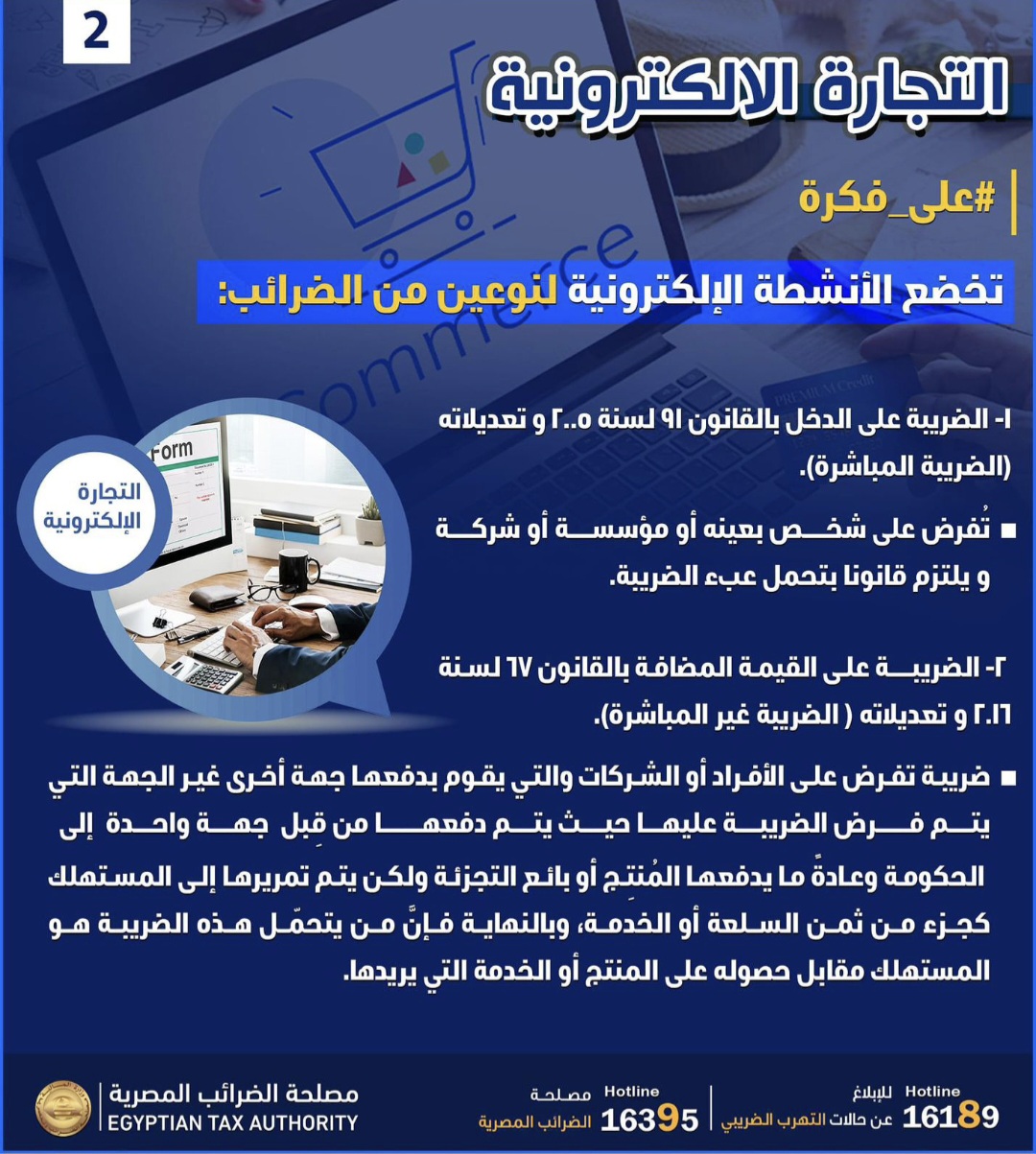 وطالبت بضرورة التوجه لوحدة التجارة الإلكترونية بمصلحة الضرائب في حال وجود أي استفسارات أو الإتصال بالرقم 16395 أو الإتصال على الخط الساخن 16189 في حال البلاغات أو عبر البريد الإلكتروني.