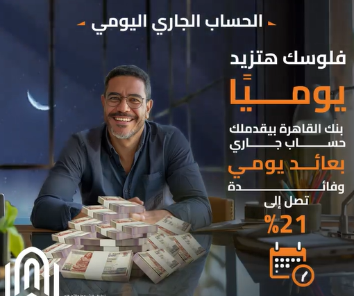 أعلن بنك القاهرة أن عن إطلاق حساب جاري جديد بعائد يومي وفائدة تصل إلى 21%، وذلك في إطار سعيه المستمر لتقديم أفضل المنتجات والخدمات للعملاء.
