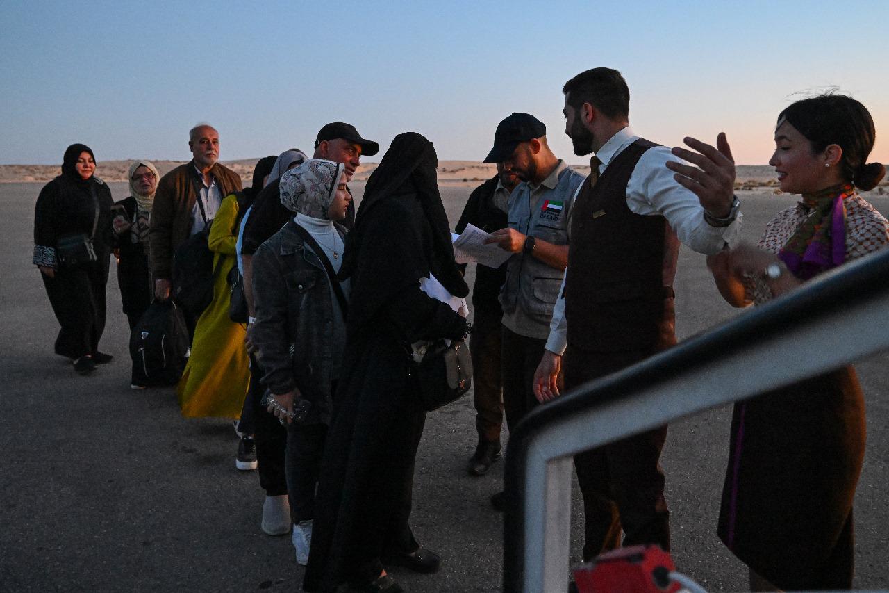 وهبطت الطائرة القادمة من مطار العريش في جمهورية مصر العربية في مطار أبوظبي وعلى متنها مجموعة من الأطفال الذين تستدعي حالاتهم رعاية طبية خاصة، من مرضى السرطان الذين يحتاجون إلى علاج حثيث، مع مرافقين من عائلاتهم، وذلك وفق البروتوكول الصحي المتعارف عليه في عمليات الإخلاء الطبي.