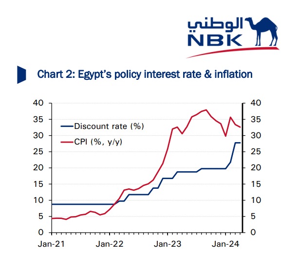 توقع بنك الكويت الوطنى أن تُبقي لجنة السياسة النقدية غدا على أسعار الفائدة دون تغيير، والتي تبلغ حاليا 27.75%.