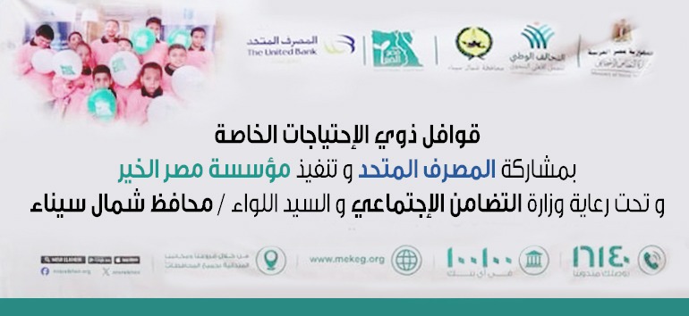 اعلن المصرف المتحد عن اطلاق “قوافل الخير” للعام الثاني علي التوالي لتقديم خدمات الرعاية الصحية لذوي الهمم والاسر الاشد احتياجا بمحافظة شمال سيناء. وذلك بالتعاون مع مؤسسة مصر الخير, وتحت رعاية وزارة التضامن الاجتماعي والسيد محافظ شمال سيناء.