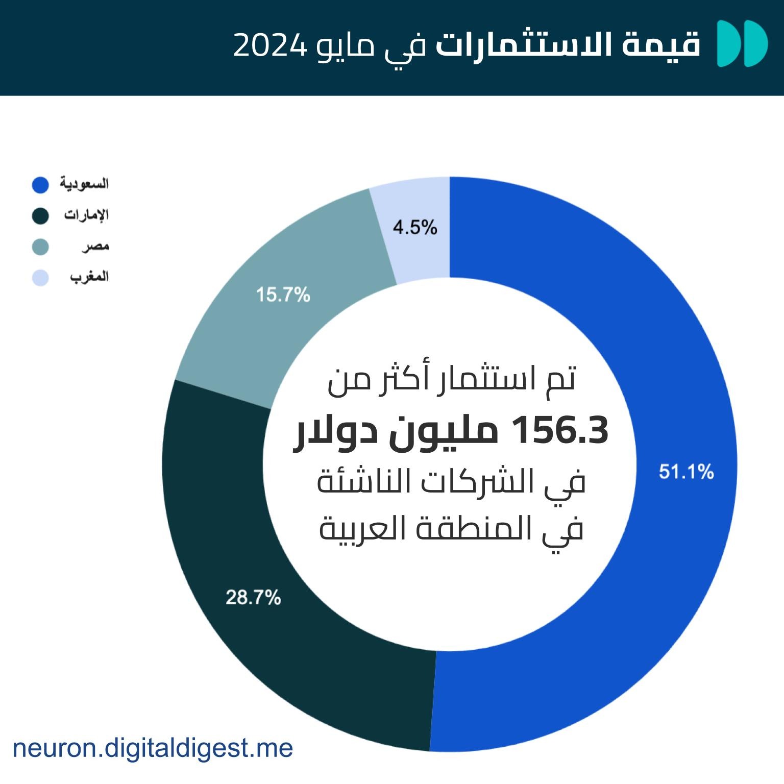 شهد شهر مايو الماضي نموًا ملحوظًا في مجال الاستثمار في الشركات الناشئة في المنطقة العربية، حيث تم جمع 156.3 مليون دولار لـ 39 شركة ناشئة في مختلف القطاعات، وذلك وفقًا لتقرير “الموجز الرقمي” الصادر عن منصة ديجيتال دايجست.