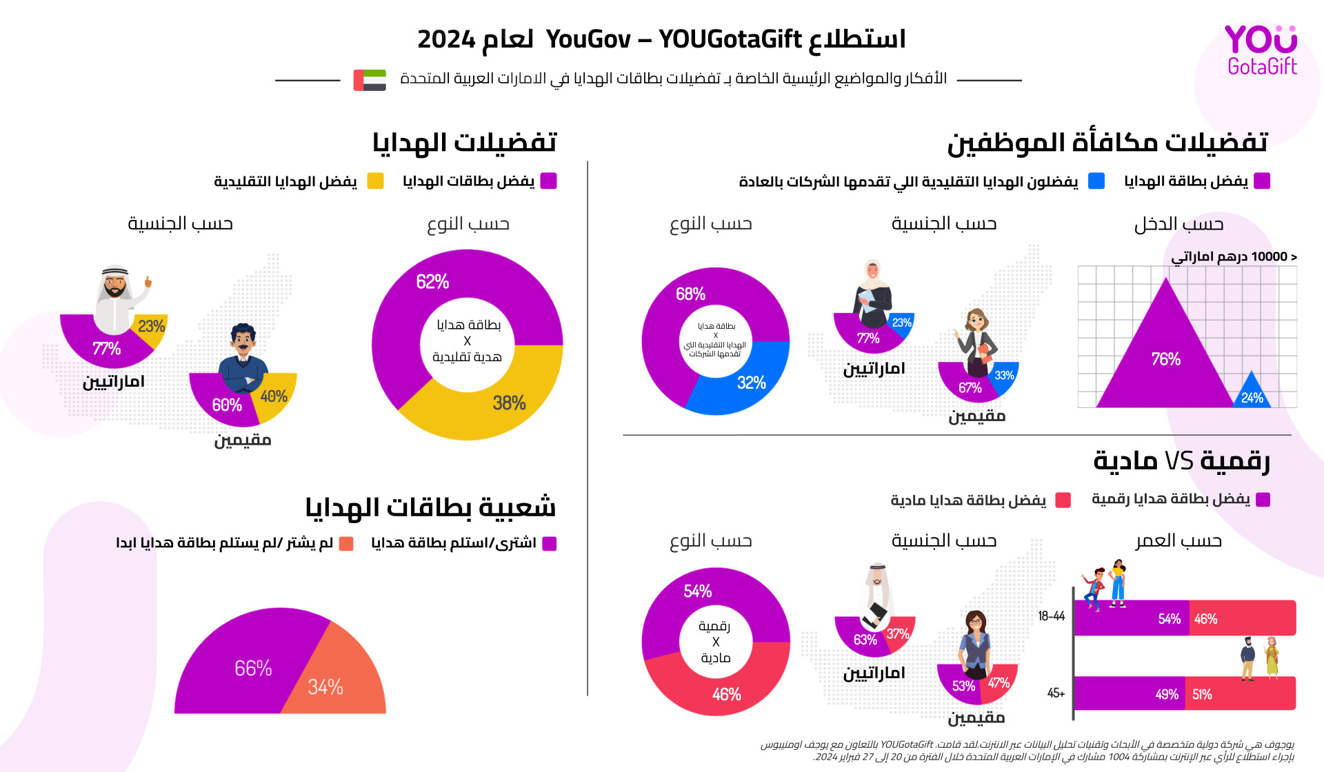 - 77% من الموظفين الإماراتيين و67% من الموظفين المقيمين أفادوا بأنهم يفضلون بطاقات الهدايا على مكافآت الشركات التقليدية