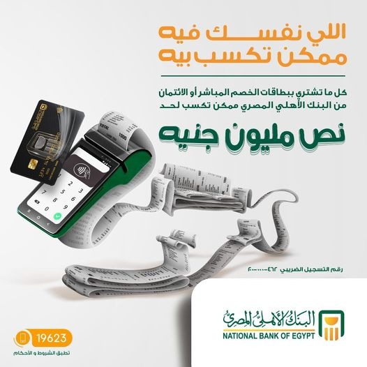 أعلن البنك الأهلي المصري عن إطلاق حملة ترويجية جديدة ومثيرة تحت شعار “اللي نفسك فيه، ممكن تكسب بيه!”، تمنح العملاء فرصة الفوز بجوائز نقدية تصل إلى نصف مليون جنيه عند استخدام بطاقات الخصم المباشر أو الائتمان في عمليات الشراء.