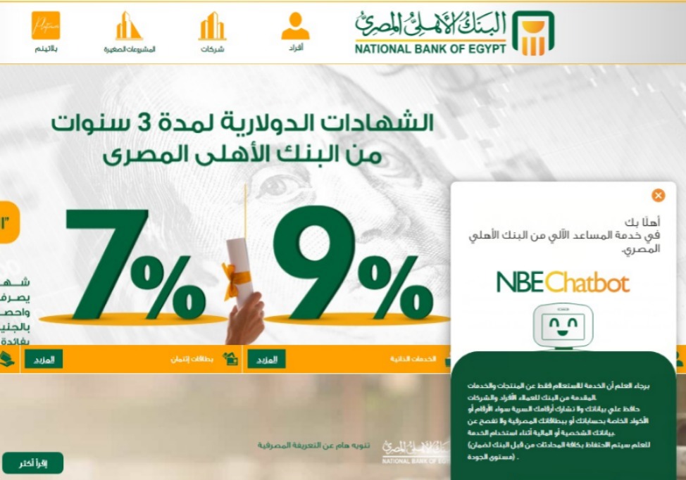 أعلن البنك الأهلي المصري عن إطلاق خدمة الشات بوت على موقعه الإلكتروني، في خطوة تهدف إلى تعزيز تجربة العملاء وتقديم خدمات مصرفية متطورة، وتتيح الخدمة الجديدة للعملاء التفاعل مع البنك بشكل سريع وفعّال، والاستفادة من مجموعة واسعة من الخدمات المصرفية المتاحة على مدار الساعة.