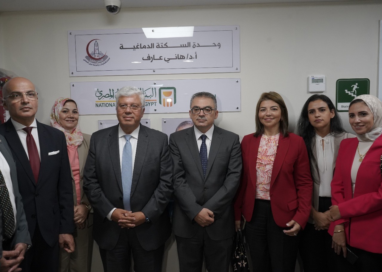 مشيدا بالجهود التي بذلها البنك الأهلي المصري والجامعة نحو إنشاء وحدة السكتة الدماغية والتي تُعَد الأولى من نوعها في الشرق الأوسط لعلاج جلطات ونزيف المخ والسكتة الدماغية، مثنياً على اهتمام مستشفيات جامعة عين شمس بمرض السكتة الدماغية وخطورته وتسببه في حالات الإعاقة والوفاة، كما أكد على إمكانيات الوحدة وتجهيزها بأحدث التقنيات والخبرات الطبية المتقدمة لتصبح وحدة متكاملة، قادرة على معالجة مئات الآلاف من المرضي سنوياً مما يعانون من مرضى السكتة الدماغية ومضاعفاتها.