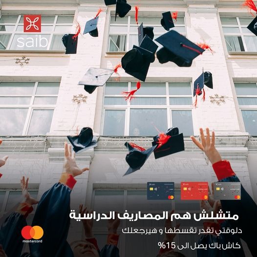يقدم بنك saib عرضًا مميزًا لعملائه لتخفيف عبء المصروفتا الدراسية حيث يتيح لهم تقسيط هذه المصاريف على 6 أو 12 شهر بدون فوائد، بالإضافة إلى استرداد جزء من المبلغ المدفوع على هيئة كاش باك يصل إلى 15%.