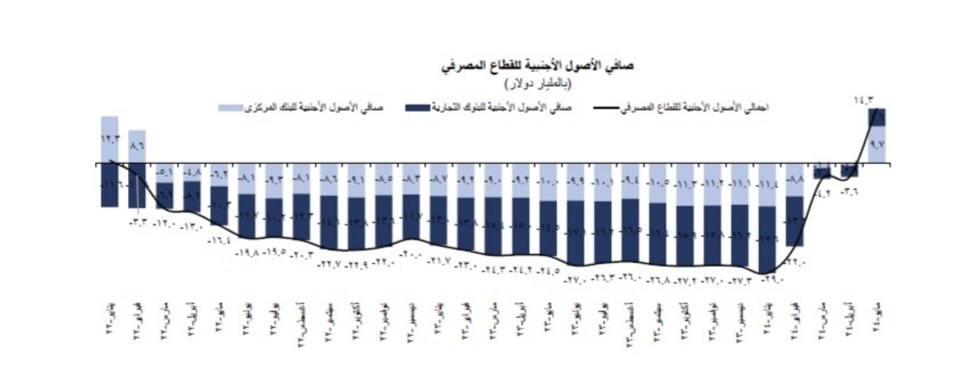 وقال المصدر إن الصعود القوى لتدفقات العملة ساهم فى القضاء على عجز الأصول الأجنبية للبنك المركزى لتسجيل فائضًا قدره 10.3 مليار دولار في يونيو 2024، مقارنة بعجز 11.4 مليار دولار في يناير 2024، كما تحسن أيضًا صافي الأصول الأجنبية للبنوك ليسجل 4.6 مليار دولار في مايو 2024، مقارنة بسالب 17.6 مليار دولار في نفس الشهر من العام الماضي.