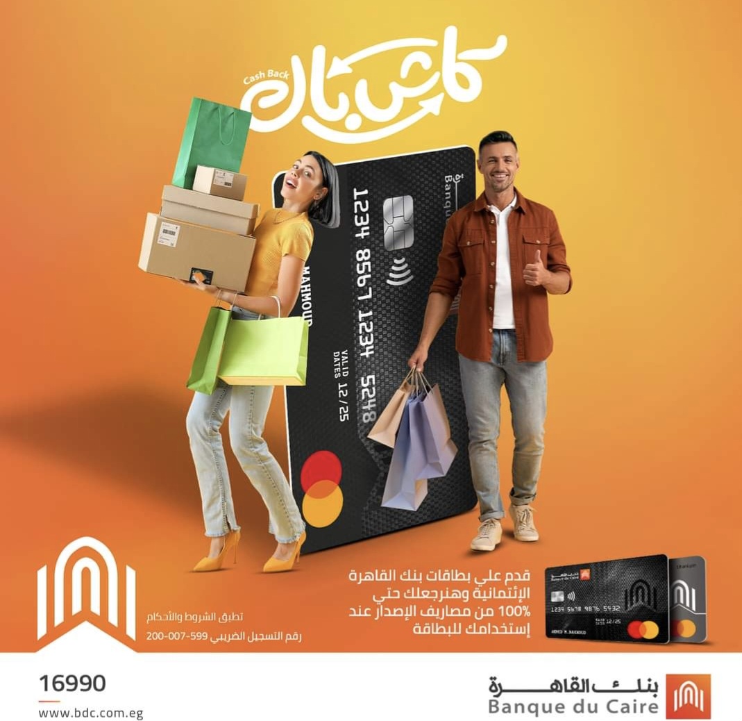 أعلن بنك القاهرة لعملائه عن إتاحة رد مصاريف إصدار بطاقات بنك القاهرة الإئتمانية التايتينوم والبلاتينيوم الجديدة والمصدرة في الفترة من 15 يوليو حتى15 سبتمبر في صورة كاش باك.