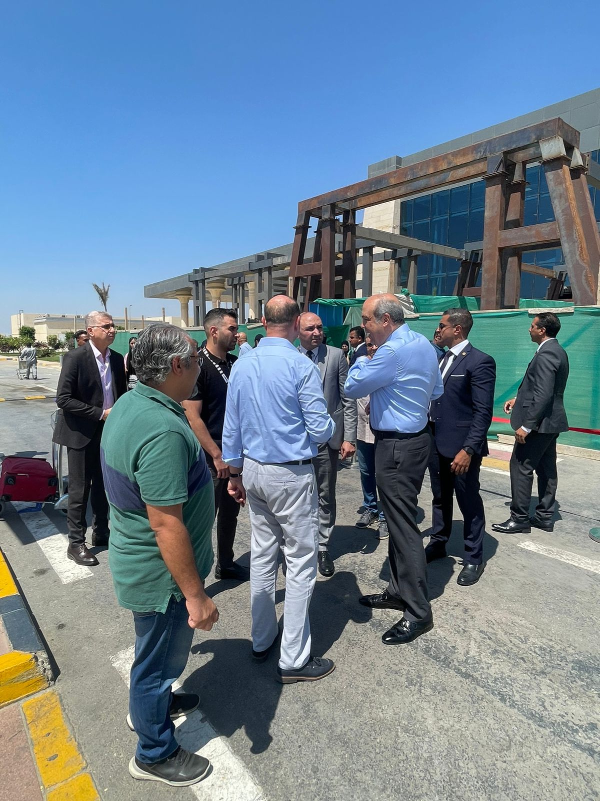 جاء ذلك خلال جولة تفقدية مفاجئة لمطار سفنكس الدولي لمتابعة سير العمل وموقف التشغيل وتقييم مستوى الخدمات المقدمة على أرض الواقع؛ و الوقوف على ما تم من مستجدات تتعلق بأعمال التطوير لاسيما مشروع إنشاء مظلة أمام بوابتي السفر والوصول قبل دخول المبنى وتزويدها بأجهزة تكييف هواء outdoor وشاشات عرض بيانات الرحلات وذلك لتقديم كافة سبل الدعم والراحة للركاب.