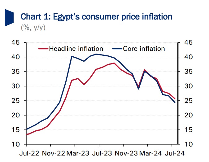 وأضاف التقرير أن التباطؤ الواضح في التضخم الأساسي يؤكد على تخفيف حدة ديناميكيات التضخم الأساسية، خاصة مع تراجع التضخم الأساسي بواقع 1.3 نقطة مئوية عن معدل التضخم الرئيسي البالغ 25.7% ومن المتوقع أن يساهم ذلك في تعزيز ثقة البنك المركزي المصري بشأن خفض أسعار الفائدة خلال الأشهر المقبلة.