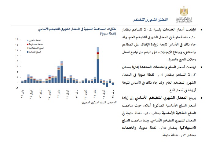 ويمكن تفسير التراجع في معدل التضخم العام أيضا بالأثر الإيجابي لفترة الأساس نتيجة للضغوط التضخمية خلال 2023.