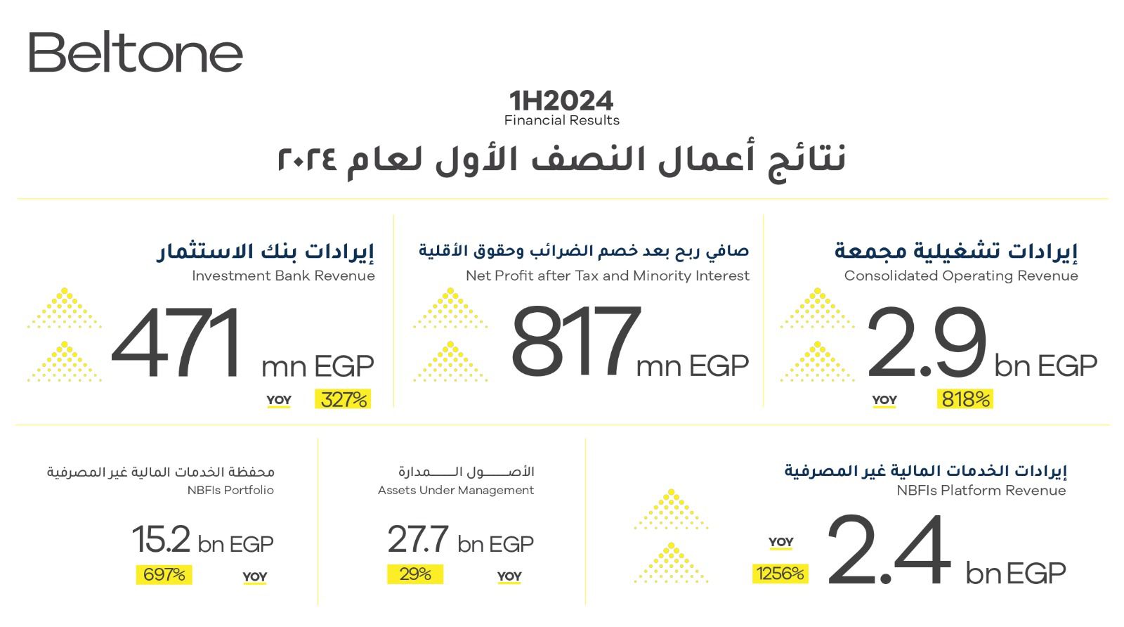 وعلى صعيد إدارة صناديق الاستثمار، حافظت شركة بلتون على موقعها كأكبر شركة لإدارة صناديق الاستثمار والمحافظ الاستثمارية التقليدية وغير التقليدية غير تابع لبنك، حيث بلغت الأصول المدارة 27.7 مليار جنيه في النصف الأول من عام 2024 مقابل 21.5 مليار جنيه خلال نفس الفترة من عام 2023، وبالمثل زادت إيرادات قطاع ترويج وتغطية الاكتتاب أكثر من 3 أضعاف على أساس سنوي نتيجة لتوسيع العروض في الأسهم، والدين، بالإضافة الي الخدمات الاستشارية.