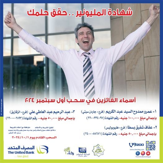 • يتم السحب على 100 ألف جنيه مصري 10 مرات فالسنة.
