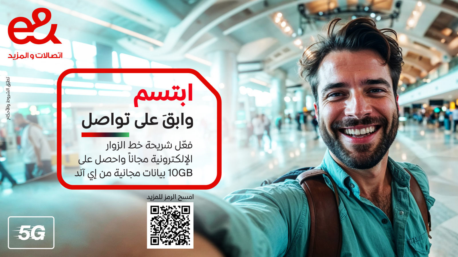 أطلقت “إي آند الإمارات” حلاً مبتكراً لزوار دولة الإمارات العربية المتحدة، حيث ستوفر لهم شريحة هاتف متحرك مزودة بـ 10 جيجابايت من البيانات مجاناً يمكن تفعيلها بشكل فوري بمجرد وصولهم إلى الدولة عبر مسح رمز الاستجابة السريع وبتقنية التعرف على الوجه.الشريحة الإلكترونية
