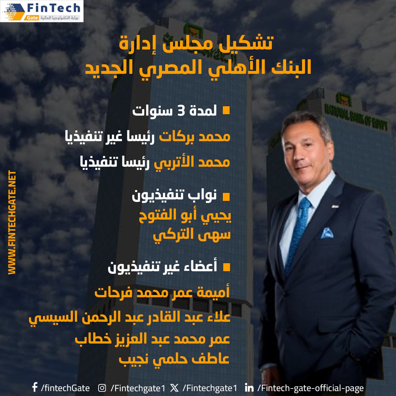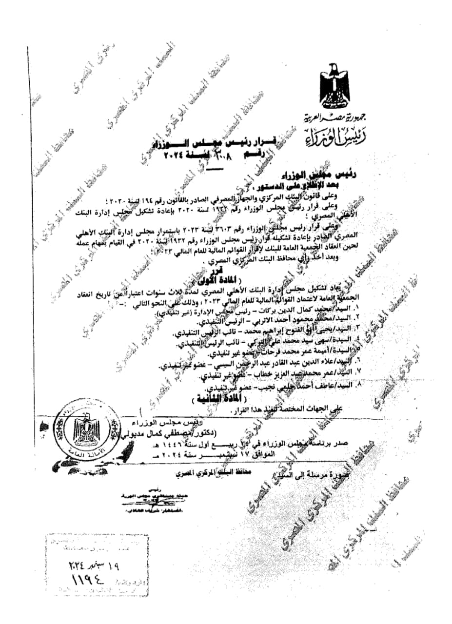 وذكر نص القرار الذي حصلت عليه بوابة التكنولوجيا المالية «فنتيك جيت Fintech Gate» أن تشكيل المجلس الجديد يسري إعتبارا من تاريخ انعقاد الجمعية العمومية لاعتماد القوائم المالية للسنة 2023.