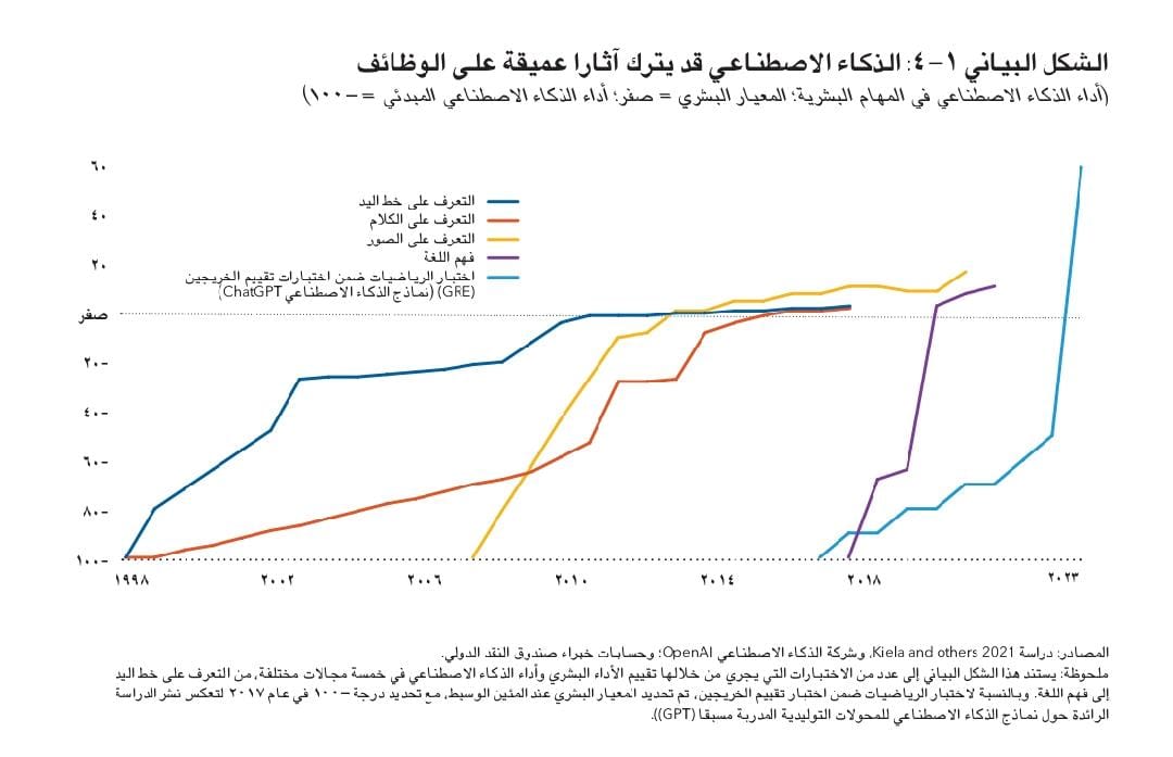 ووفقا لدراسة أعدها الصندوق مؤخرا، فإن ٦٠% تقريبا من الوظائف في الاقتصادات المتقدمة قد تتأثر سلبا يفعل الذكاء الاصطناعي وبالنسبة للأسواق الصاعدة والبلدان النامية فمن المتوقع أن تبلغ هذه النسبة 40% و 26% على التوالى.