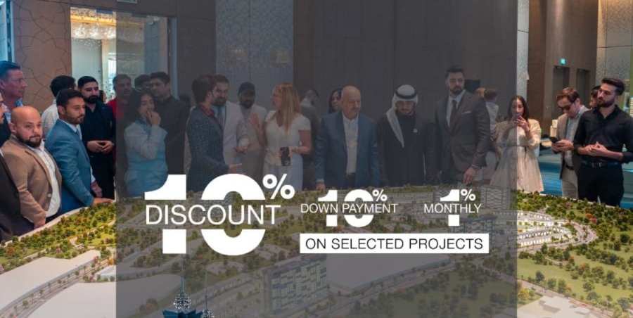 The event includes various offers on specific projects, including an offer giving a 10% discount, with a 10% down payment, and 1% monthly installment until hand over, in addition to another offer that gives a 5% discount, with a 5% down payment, and 1% monthly installment until hand over, as well as the possibility of benefiting from a 15% discount when paying a 20% down payment, and 1% monthly installment until hand over.