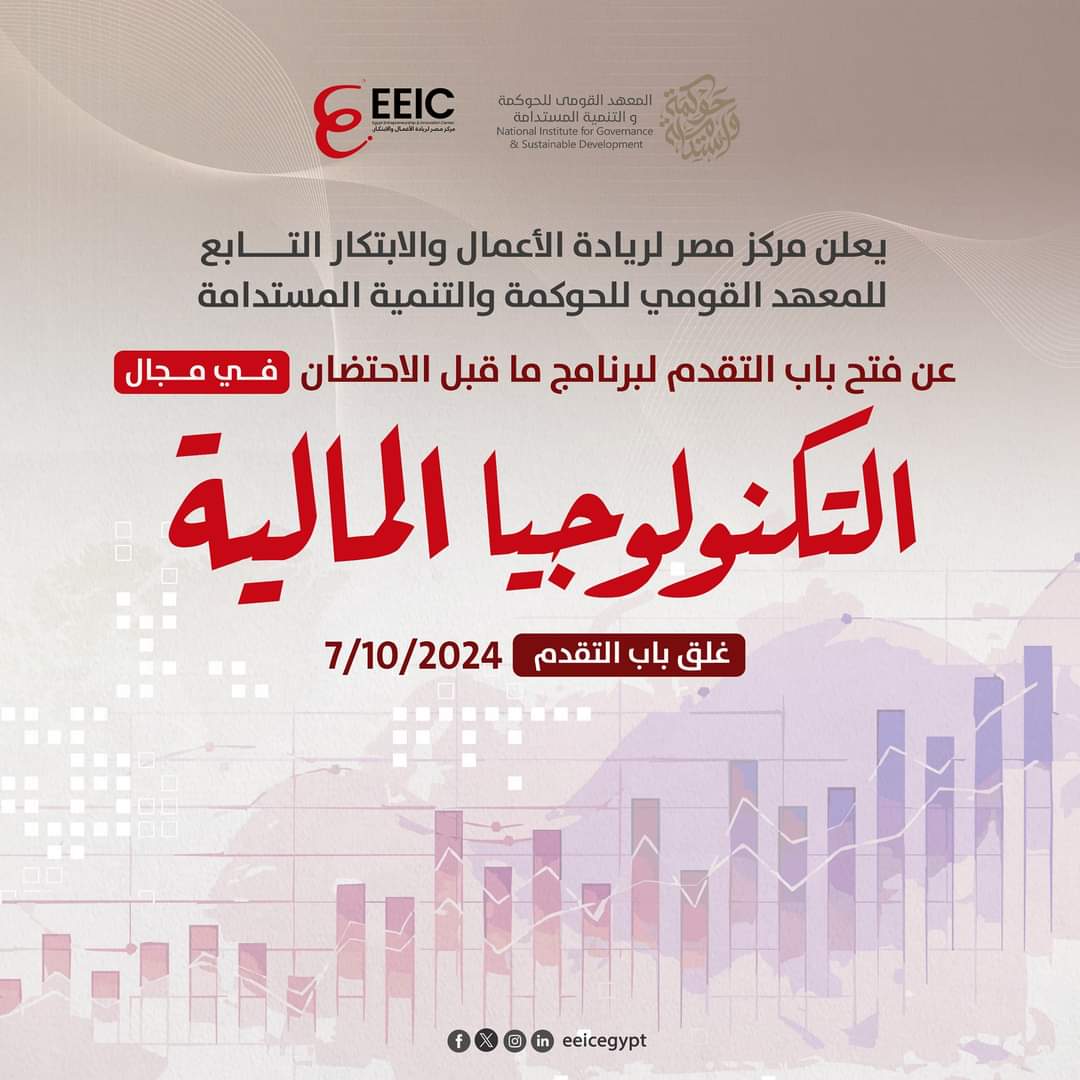أعلن مركز مصر لريادة الأعمال والابتكار التابع للمعهد القومي للحوكمة والتنمية المستدامة عن فتح باب التقدم لبرنامج “ما قبل الاحتضان في مجال التكنولوجيا المالية”.