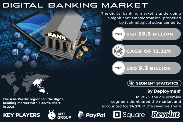 أشار تقرير حديث لشركة SNS Insider إلى أن “قيمة سوق الخدمات المصرفية الرقمية بلغت 9.3 مليار دولار في عام 2023 ومن المتوقع أن تنمو إلى 26.5 مليار دولار بحلول 2032، محققة معدل نمو سنوي مركب يبلغ 12.32% خلال الفترة المتوقعة من 2024 إلى 2032.