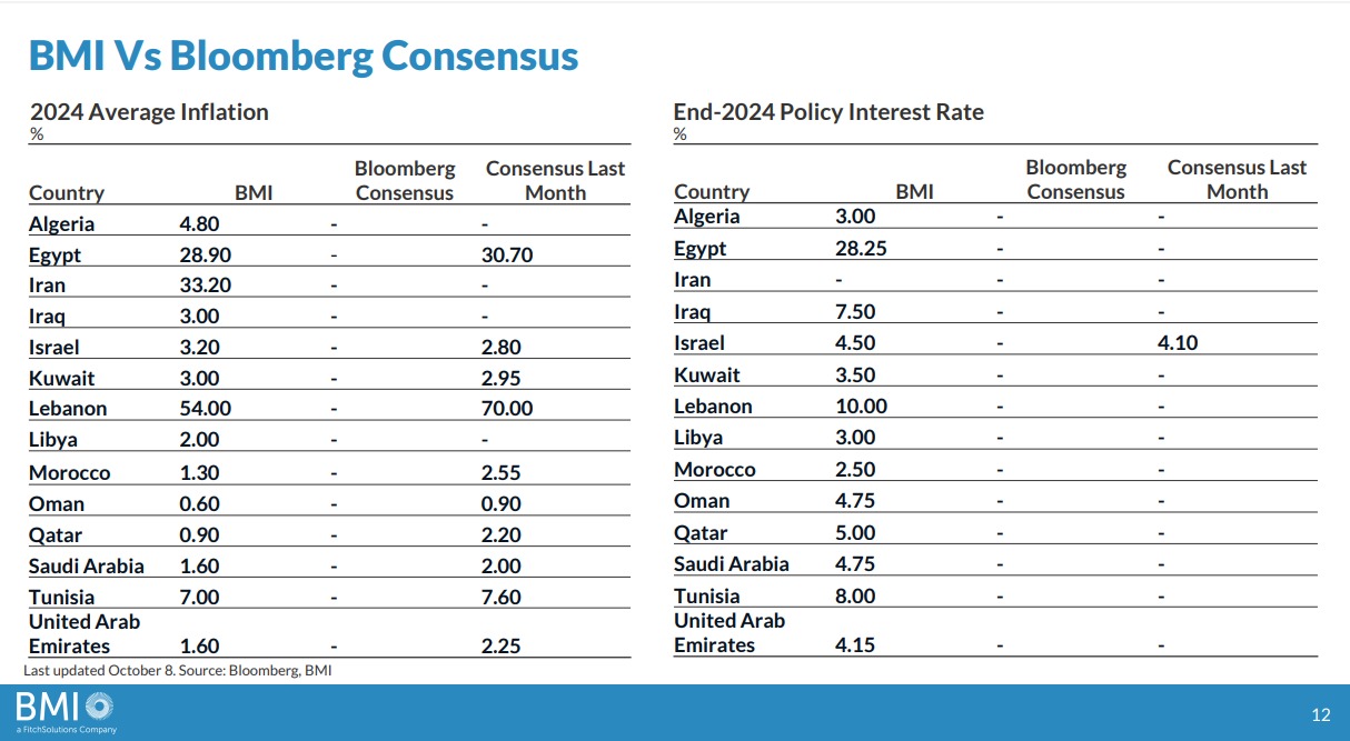 وقالت الشركة إن هذا التباين في معدلات التضخم يعكس التحديات الاقتصادية المتباينة التي تواجهها دول المنطقة، والتي تختلف بحسب الظروف المحلية لكل دولة.