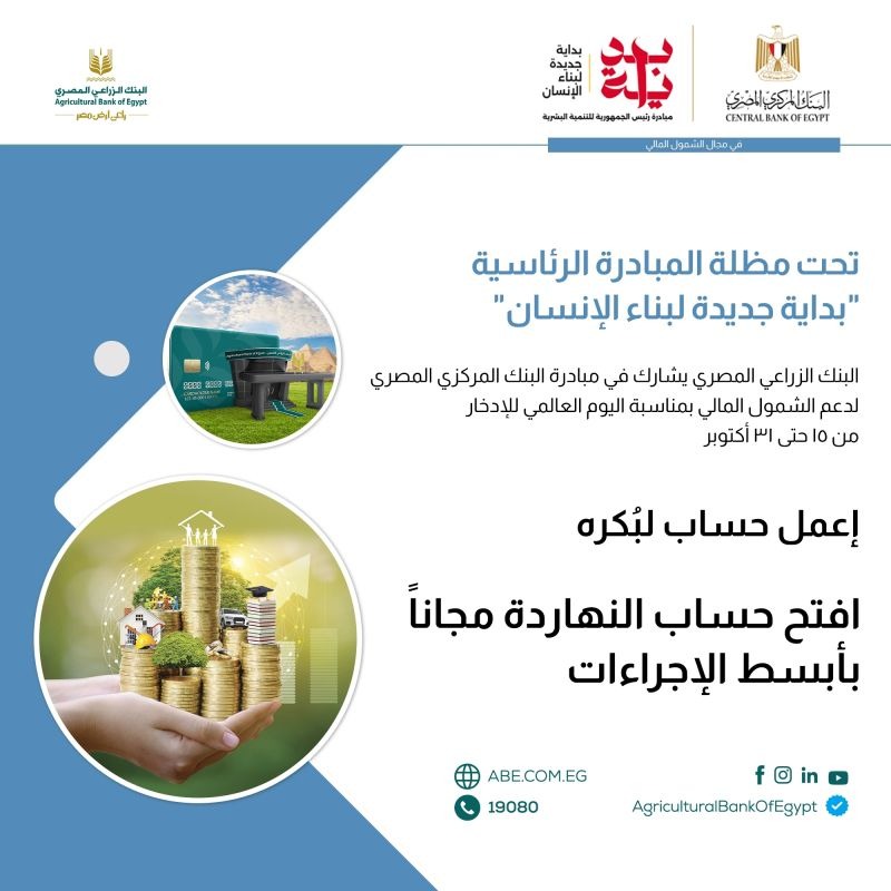 الرئيسية » «البنك الزراعي المصري» يشارك في مبادرة البنك المركزي للشمول المالي بمناسبة اليوم العالمي للادخار