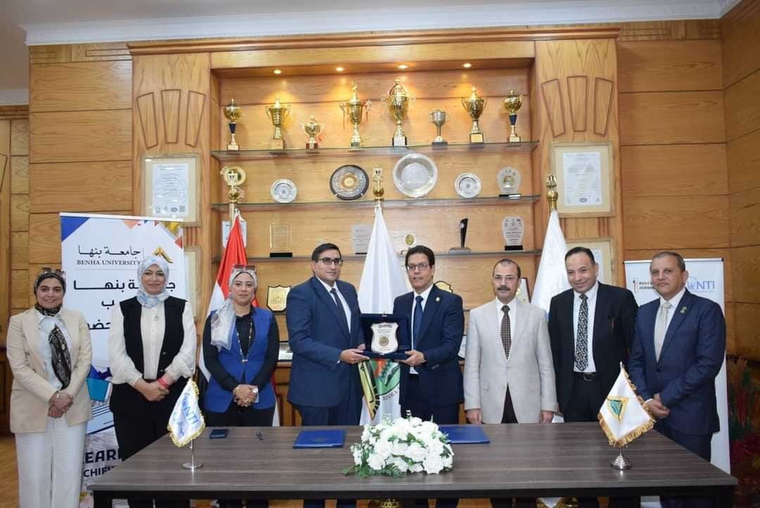 وقع الدكتور ناصر الجيزاوي رئيس جامعة بنها ، والدكتور أحمد خطاب فتحي مدير المعهد القومي للاتصالات بروتوكول تعاون بين الجامعة والمعهد القومي للاتصالات في إطار التعاون المشترك في مجالات الأبحاث والإشراف العلمي وتدريب الطلاب على المجالات التكنولوجية.