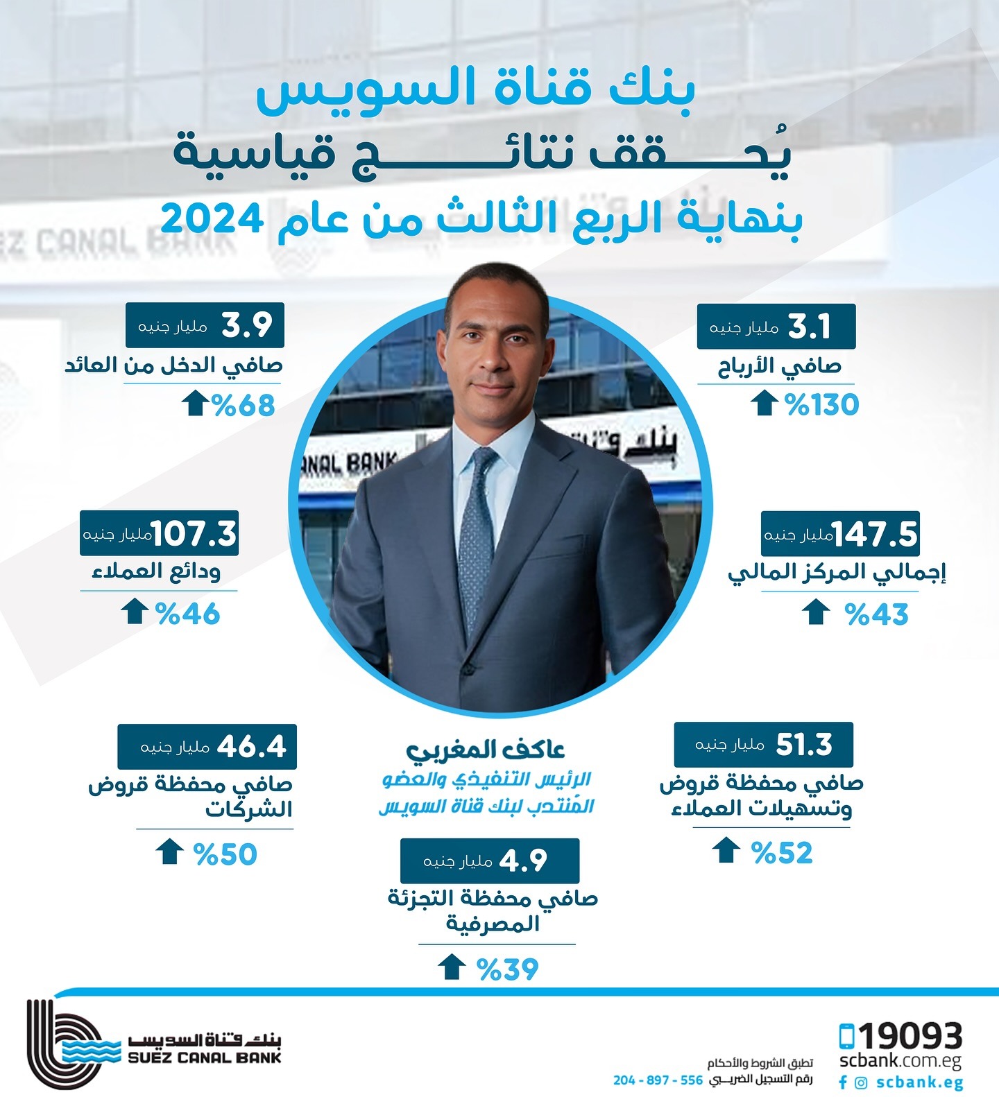 صرح عاكف المغربي الرئيس التنفيذي والعضو المنتدب لبنك قناة السويس بان صافي أرباح البنك ارتفعت إلى 3.1 مليار جنيه مصري بنهاية سبتمبر 2024 مقارنة ب 1.4 مليار جنيه مصري بنهاية سبتمبر 2023 محققاً نسبة نمو قدرها 130% مدعوما بزيادة صافي الدخل من العائد بنسبة 68% ليصل الي 3.9 مليار جنية مصري بنهاية سبتمبر 2024 مقارنة ب 2.3 مليار جنية مصري بنهاية سبتمبر 2023.