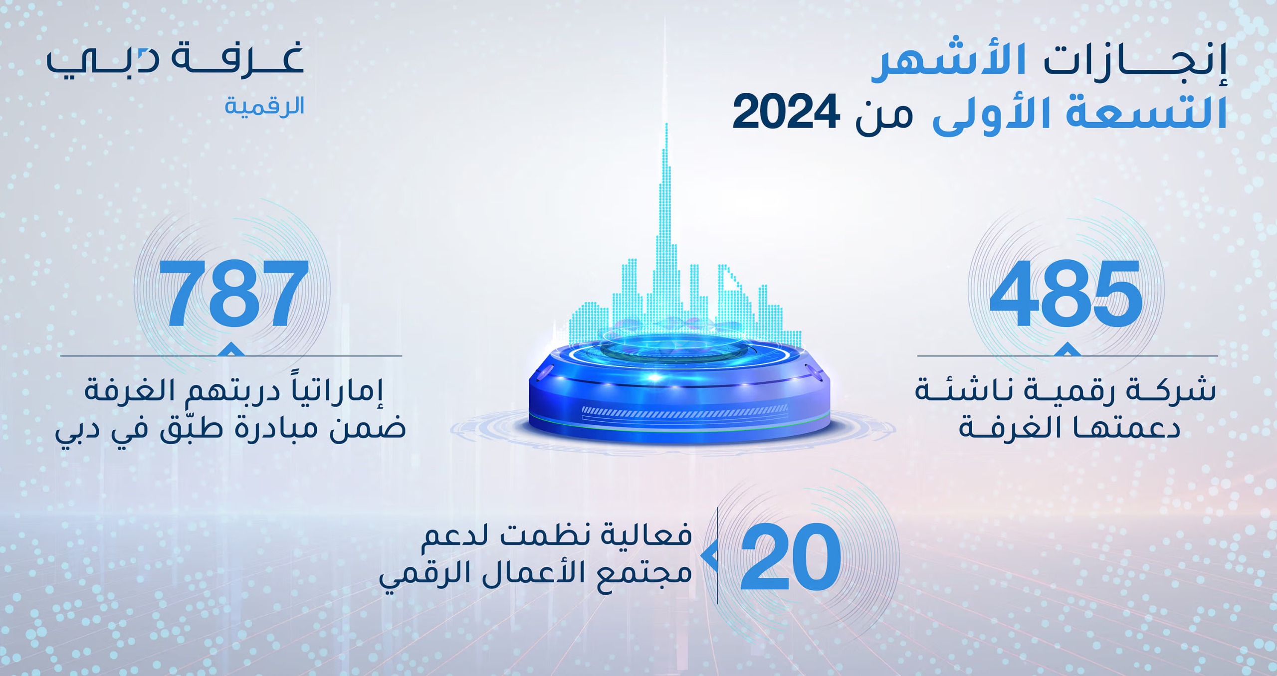 ونظمت غرفة دبي للاقتصاد الرقمي خلال الأشهر التسعة الأولى من العام الحالي 20 فعالية لدعم مجتمع الأعمال، وتمكين الشركات الناشئة ورعاية المواهب وتعزيز الشراكات، والارتقاء بمنظومة ممارسة الأعمال.