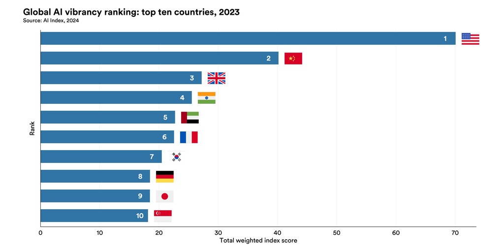 الصفحة الرئيسية ذكاء اصطناعي«الولايات المتحدة» و«الصين» و«المملكة المتحدة» يتصدرون تصنيف «Stanford HAI» العالمي للذكاء الاصطناعي