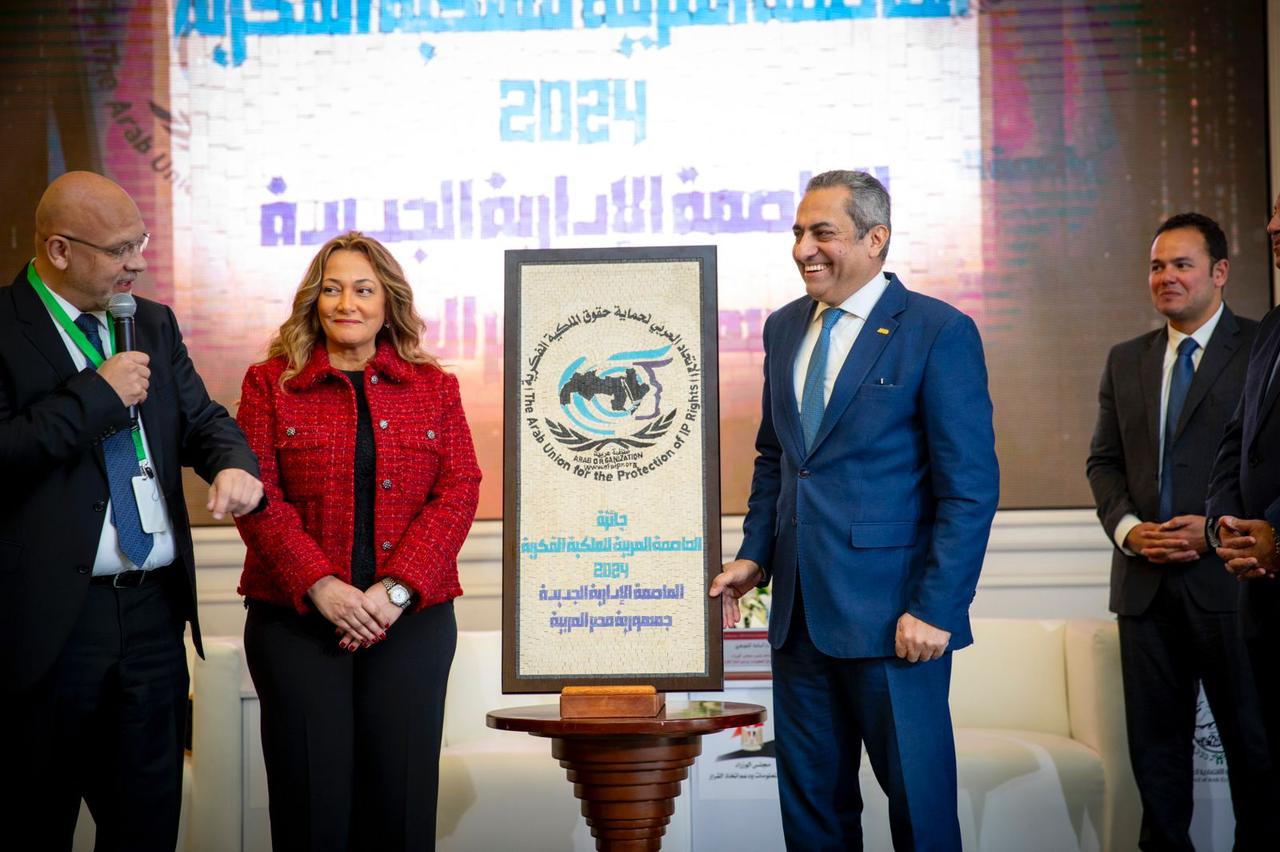 كرّم الاتحاد العربي لحماية حقوق الملكية الفكرية التابع لجامعة الدول العربية وبالشراكة مع مركز المعلومات ودعم اتخاذ القرار برئاسة مجلس الوزراء في المؤتمر المنعقد تحت شعار “دور حقوق الملكية الفكرية في تعزيز التنمية الاقتصادية بالدول العربية” العاصمة الإدارية الجديدة “كعاصمة للملكية الفكرية”، بحضور المهندس خالد عباس رئيس مجلس الإدارة والعضو المنتدب لشركة العاصمة الإدارية للتنمية العمرانية، والمنظمات الدولية والإقليمية والهيئات العامة والخاصة المعنية بحقوق الملكية الفكرية بالدول العربية.