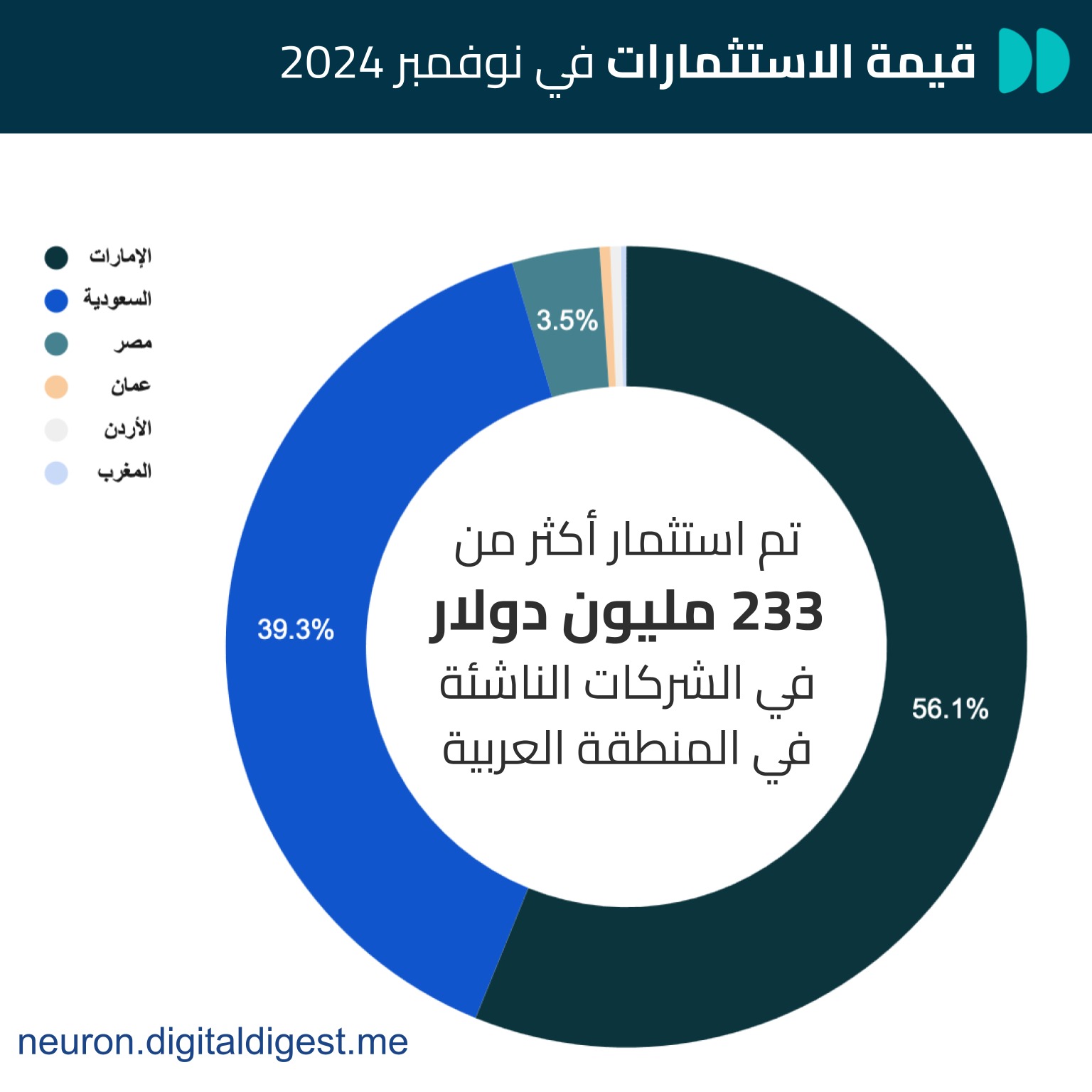ووفقا للموجز الرقمي فقد بلغ حجم الاستثمارات في الربع الرابع من عام 2024 نحو 384 مليون دولار عبر 82 صفقة. هذا الرقم يعكس تراجعًا كبيرًا مقارنة بالسنوات الثلاث الماضية، حيث تجاوزت الاستثمارات في الربع الرابع من كل عام حاجز المليار دولار.