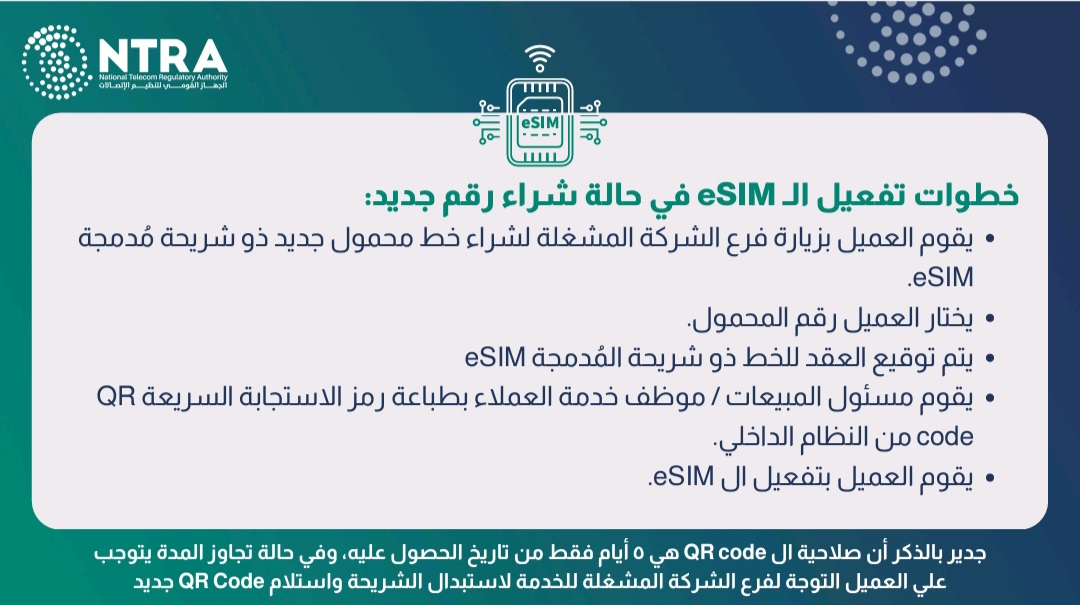 أطلق الجهاز القومي لتنظيم الاتصالات تقنية الشريحة المدمجةeSIM في السوق المصري، بعد استكمال مشغلي المحمول الأربعة لكافة الاختبارات الفنية اللازمة لتشغيل الخدمة.