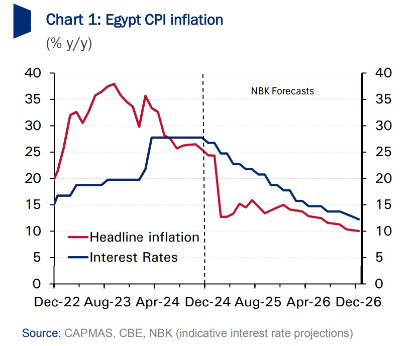 وأضاف من المتوقع أن ينخفض التضخم الرئيسي إلى أقل من 25% في تقرير ديسمبر، وهو ما سيكون لأول مرة في عامين، مما قد يدفع لجنة السياسة النقدية بالبنك المركزي المصري إلى خفض أسعار الفائدة بنحو 2-3% خلال اجتماعها الأخير لهذا العام في 26 ديسمبر.