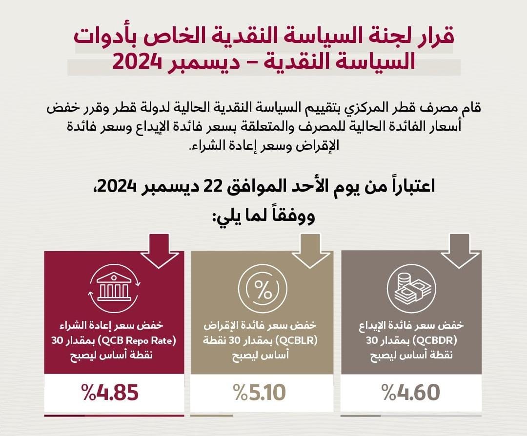 الصفحة الرئيسية أخبار«مصرف قطر المركزي» يخفض أسعار الفائدة 30 نقطة أساس