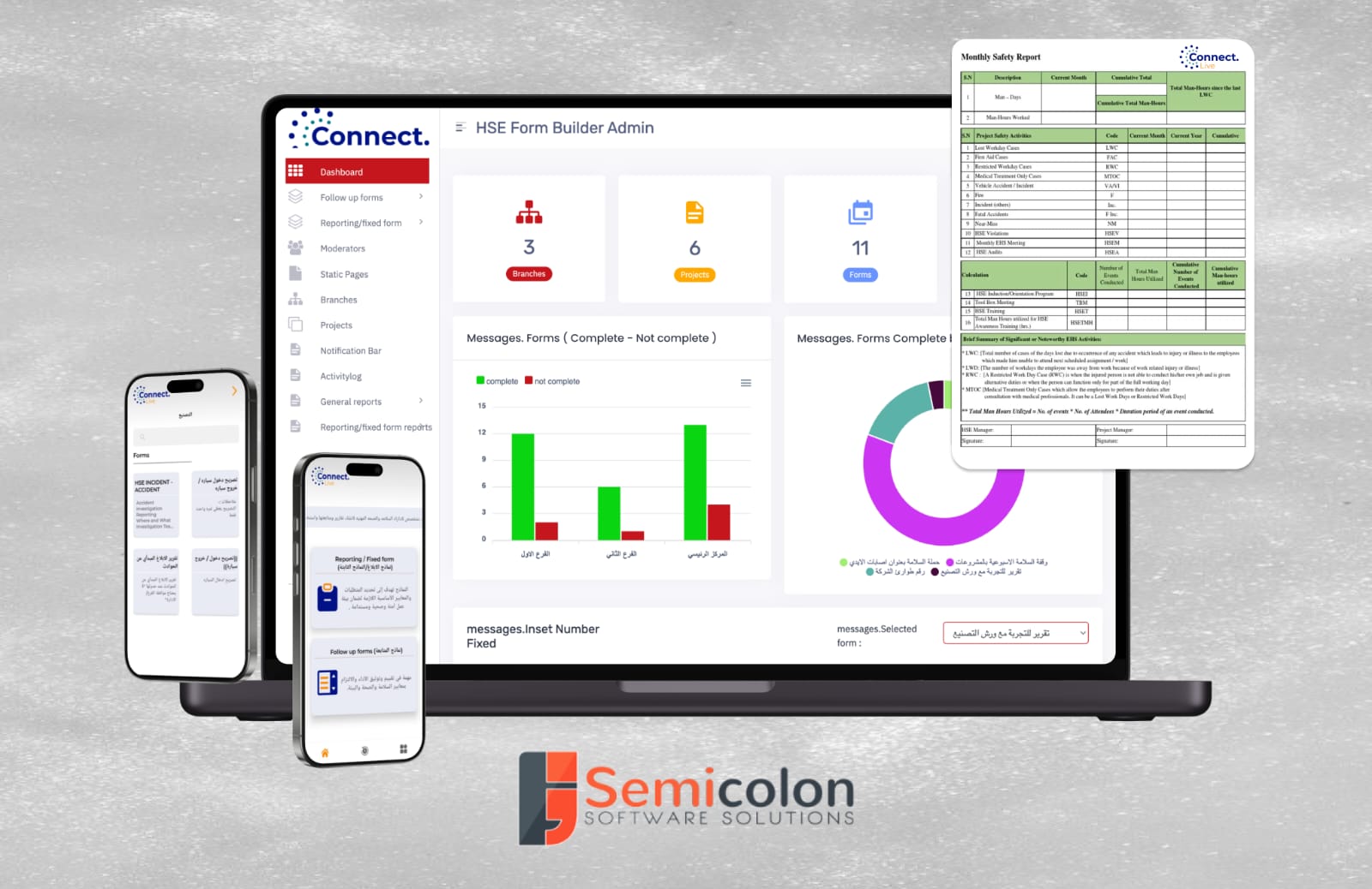وأكدت «سيميكولون للبرمجيات» على ان برنامج Connect Live، يعتبر أفضل الحلول المتكاملة، لإدارة الصحة والسلامة المهنية، اذ يعتبر الحل الأمثل لإدارة نظم الصحة والسلامة المهنية، ويتيح للشركات والمشروعات وضع وتنفيذ خطط سلامة شاملة تتوافق مع المعايير المحلية والعالمية.