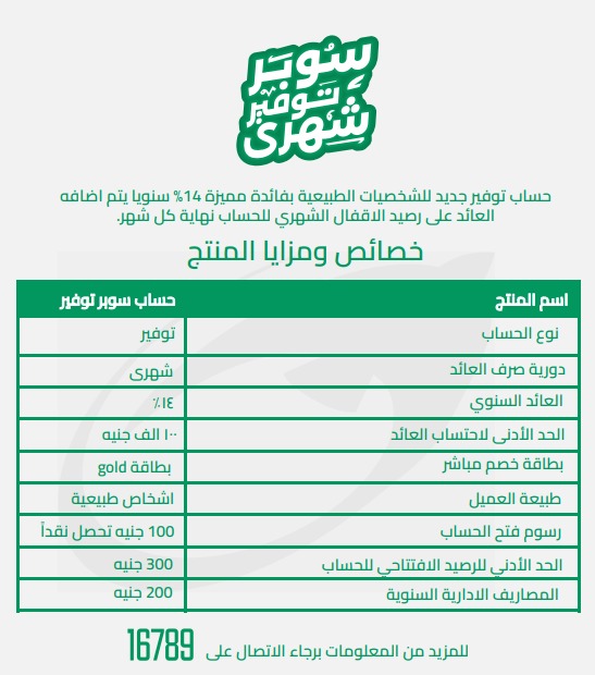 • الحد الأدنى للرصيد الافتتاحي: 300 جنيه.