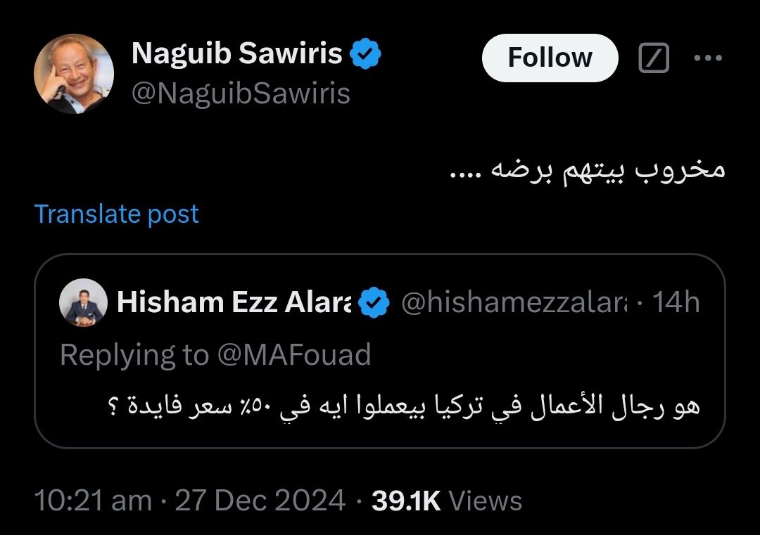ورد عليه ساويرس ” مخروب بيتهم برضو..”.