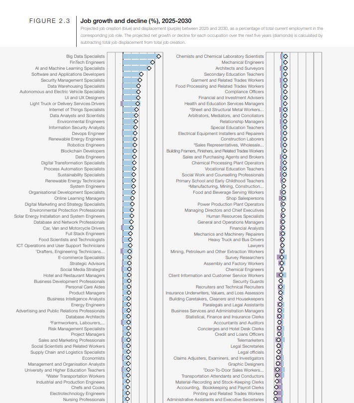 أطلق المنتدى الاقتصادي العالمي تقرير مستقبل الوظائف لعام 2025، حيث من المتوقع أن تُولد الاتجاهات العالمية المتغيرة في التكنولوجيا والاقتصاد والتحول الأخضر 170 مليون فرصة عمل جديدة بحلول 2030، بزيادة 78 مليون وظيفة.