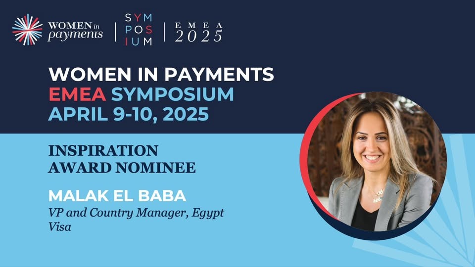 أعلنت مؤسسة Women in Payments عن ترشيح ملاك البابا، نائب رئيس فيزا ومدير الشركة في مصر، لجائزة الإلهام المرموقة التي تُمنح للشخصيات التي تُسهم بشكل ملحوظ في تمكين المرأة وتعزيز دورها في قطاع المدفوعات والتكنولوجيا المالية.